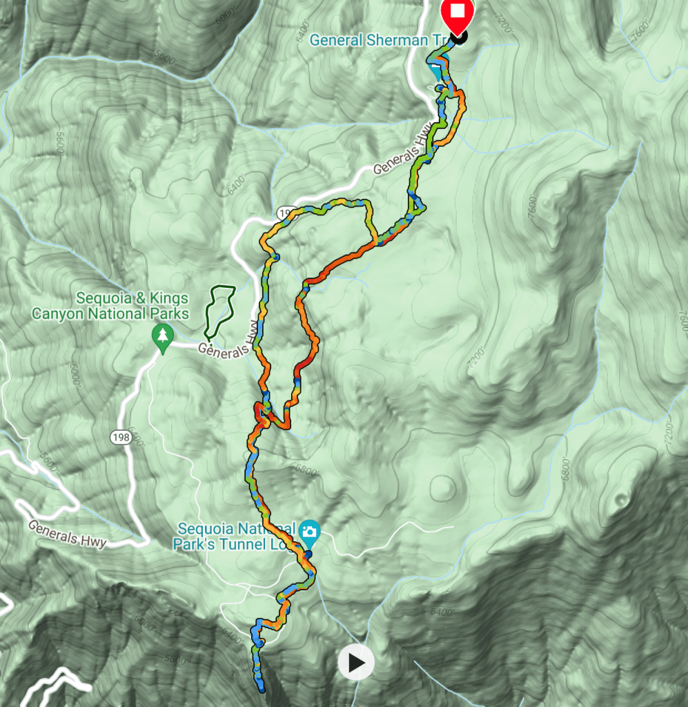We ran an extended variation of the Giant Forest Loop by adding a trip up Moro Rock, which I strongly recommend seeing.