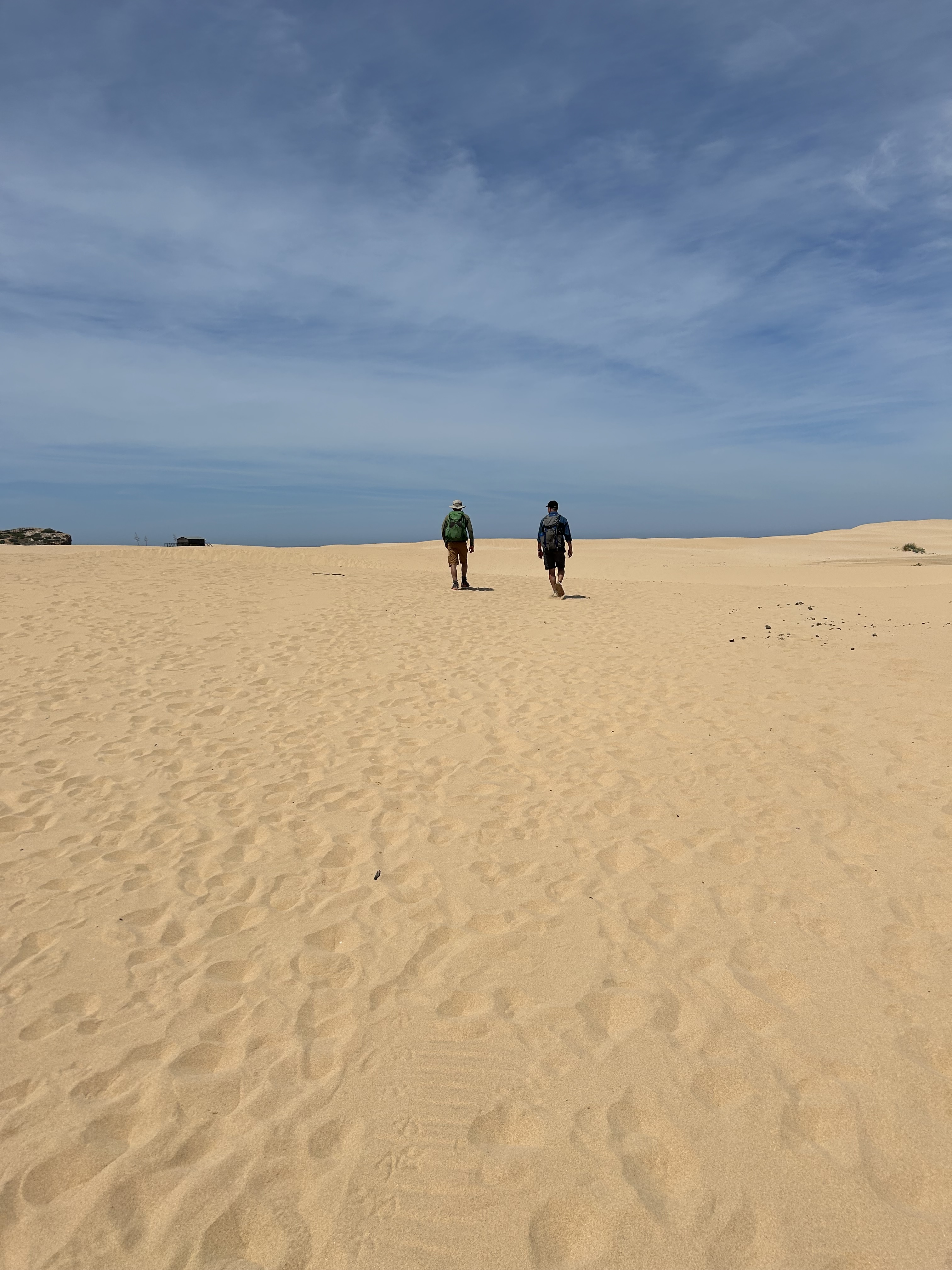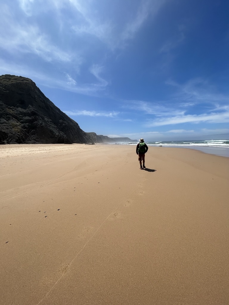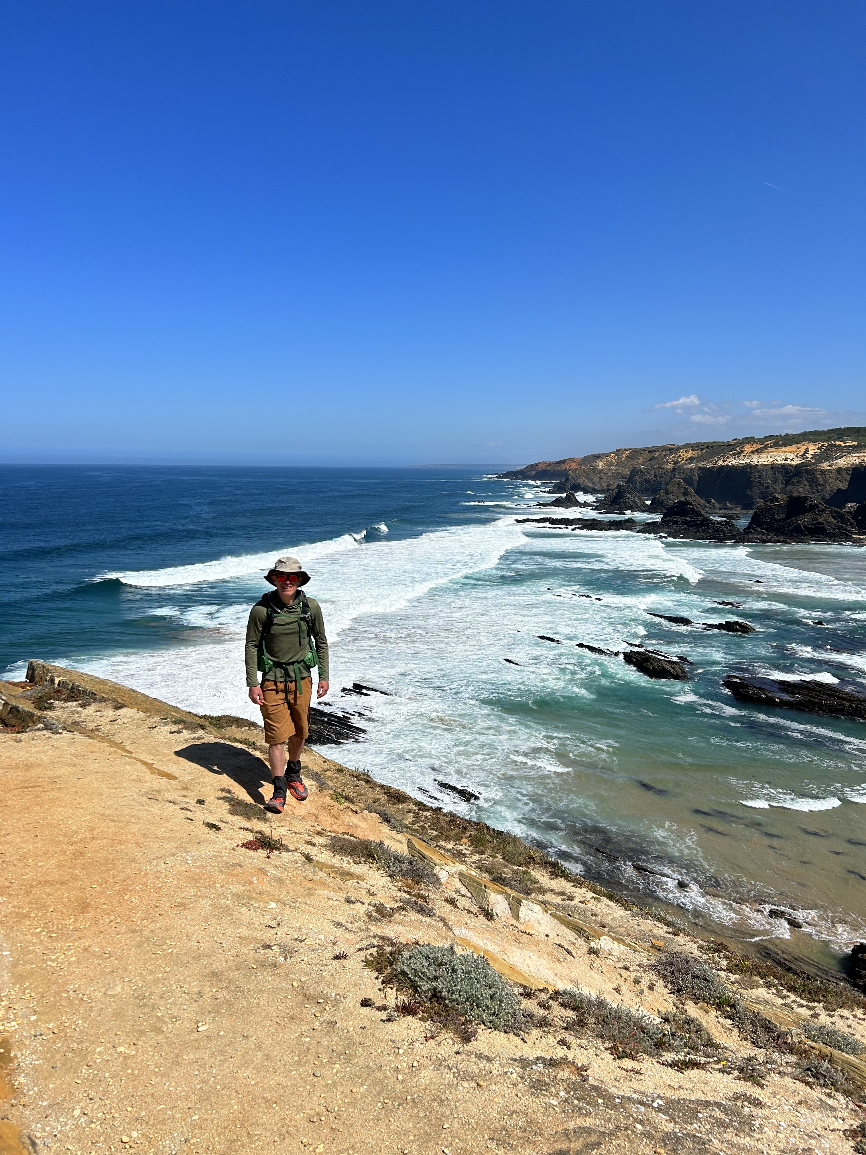We were a bit nervous about our first day’s walk of 12 miles as it was mostly on the sand and without shade. Just coming out of winter at home, the daytime temperatures were in the 50s, and we were jumping firmly into the mid-80s and 90s in Portugal. I acclimatized to the heat more slowly than Sean and was more affected by the heat, humidity, and lack of shade. But our first day was beautiful, not too punishing, and we finished just before a rain storm, which allowed for a lazy afternoon in an amazing BnB. They even made us a dinner reservation at Ritual, which was the best meal and gin of our entire trip!
