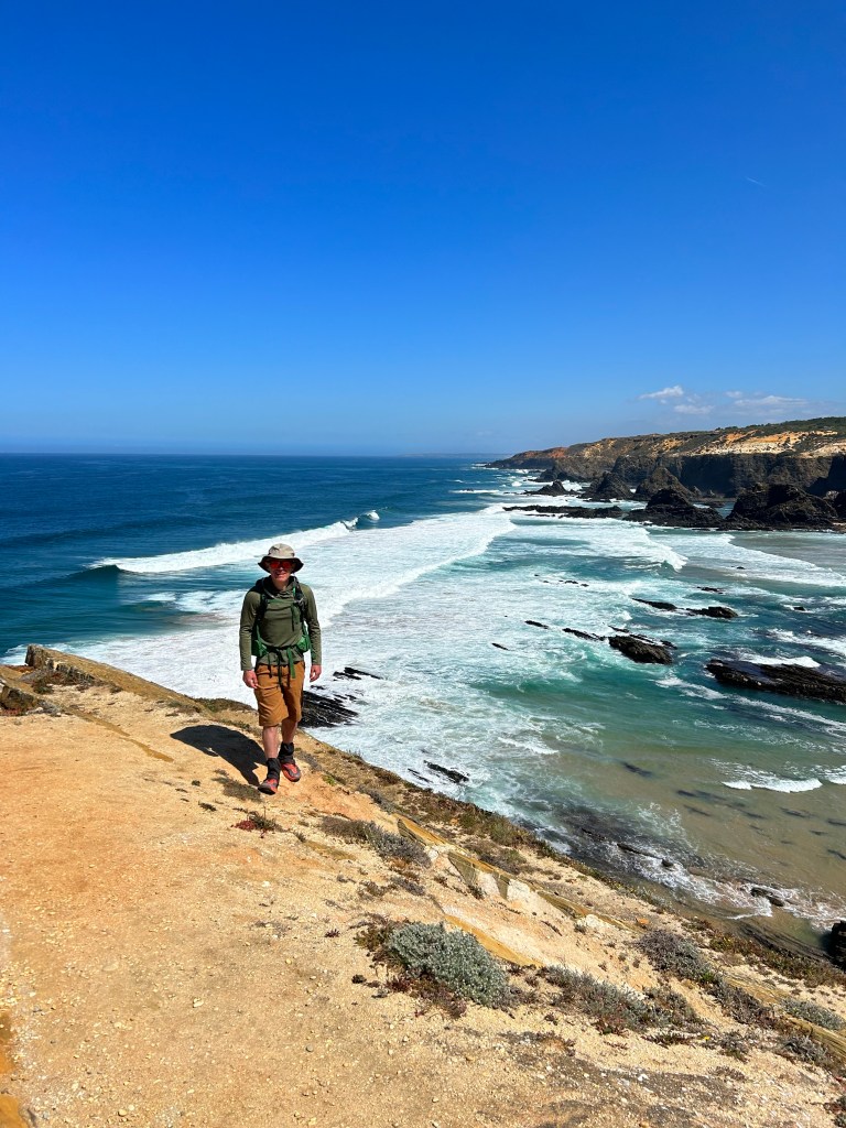 The Rota Vicentina is a 750-km network of trails – we walked the Historical Way and Fishermen’s Trail portions for a total of 121 miles. We started on April 20th, 2023, and traveled north to south along the southwestern coastline of Portugal’s Alentejo region and Vicentina coast for ten days, finishing in Cabo Sao Vicente, Europe’s most south-westerly point. Having left the planning for the trip to the last minute, we hired Mac Adventures to organize accommodations and luggage transfers for us. They came recommended to us by other walkers in Scotland, and they have an office in Denver, Colorado, which made it convenient for us.
