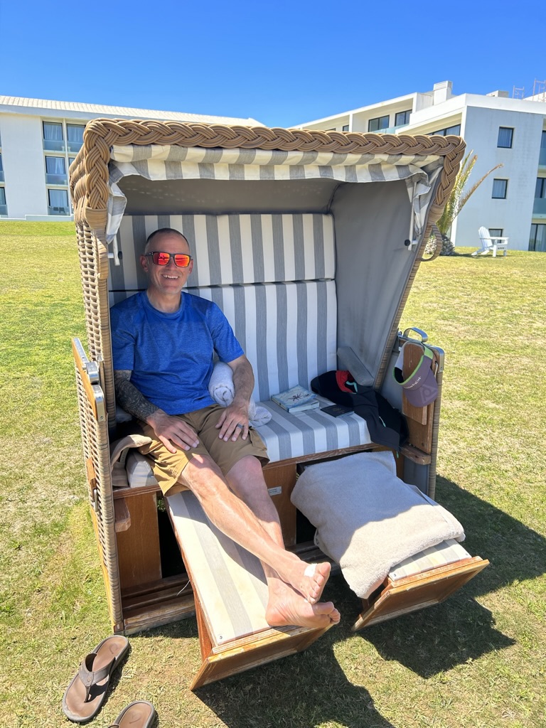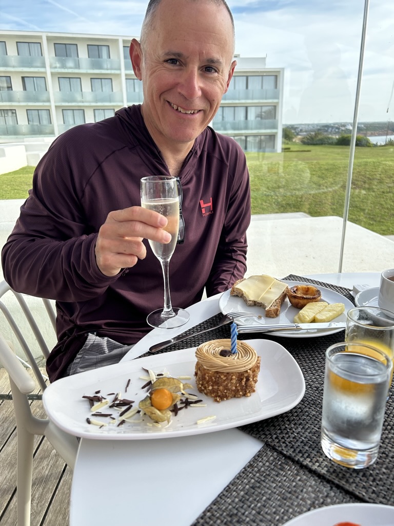 After the walk, we treated ourselves to a few days at the Memmo Baleeira Resort in the small town of Sagres. It was, after all, Sean’s birthday, and nothing says birthday like breakfast cake and champagne! And we still had a stay with our new friends in Lisbon to look forward to!