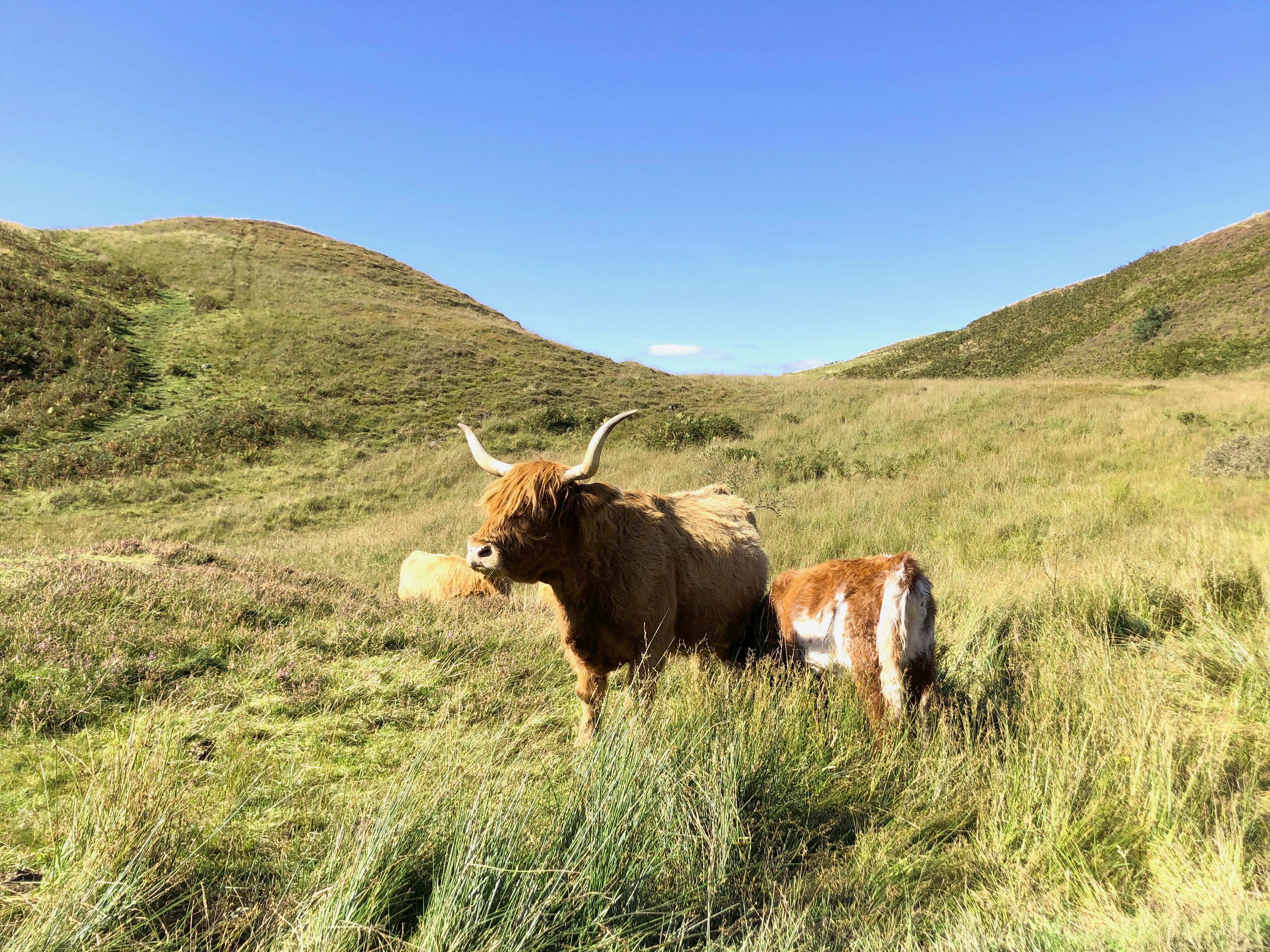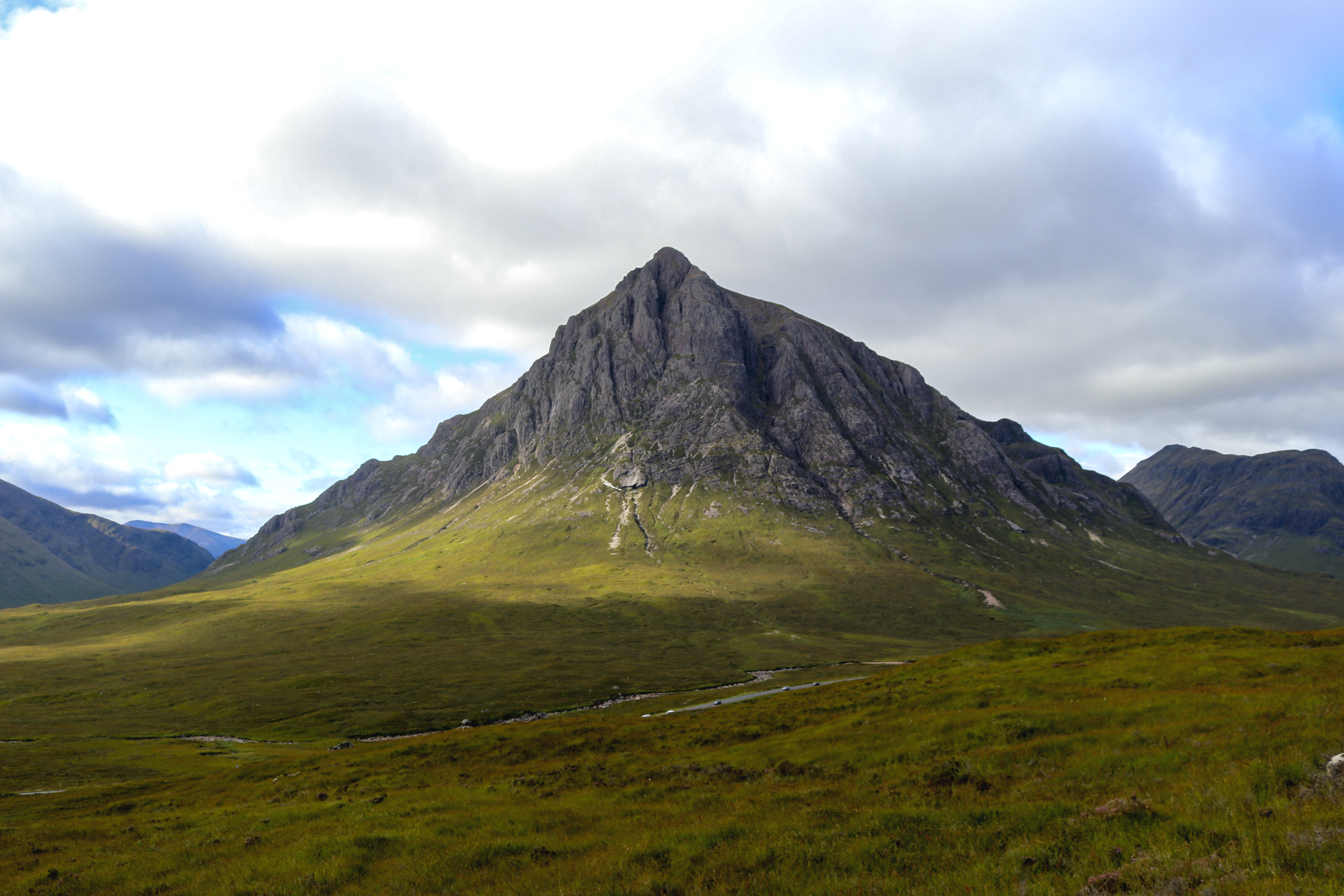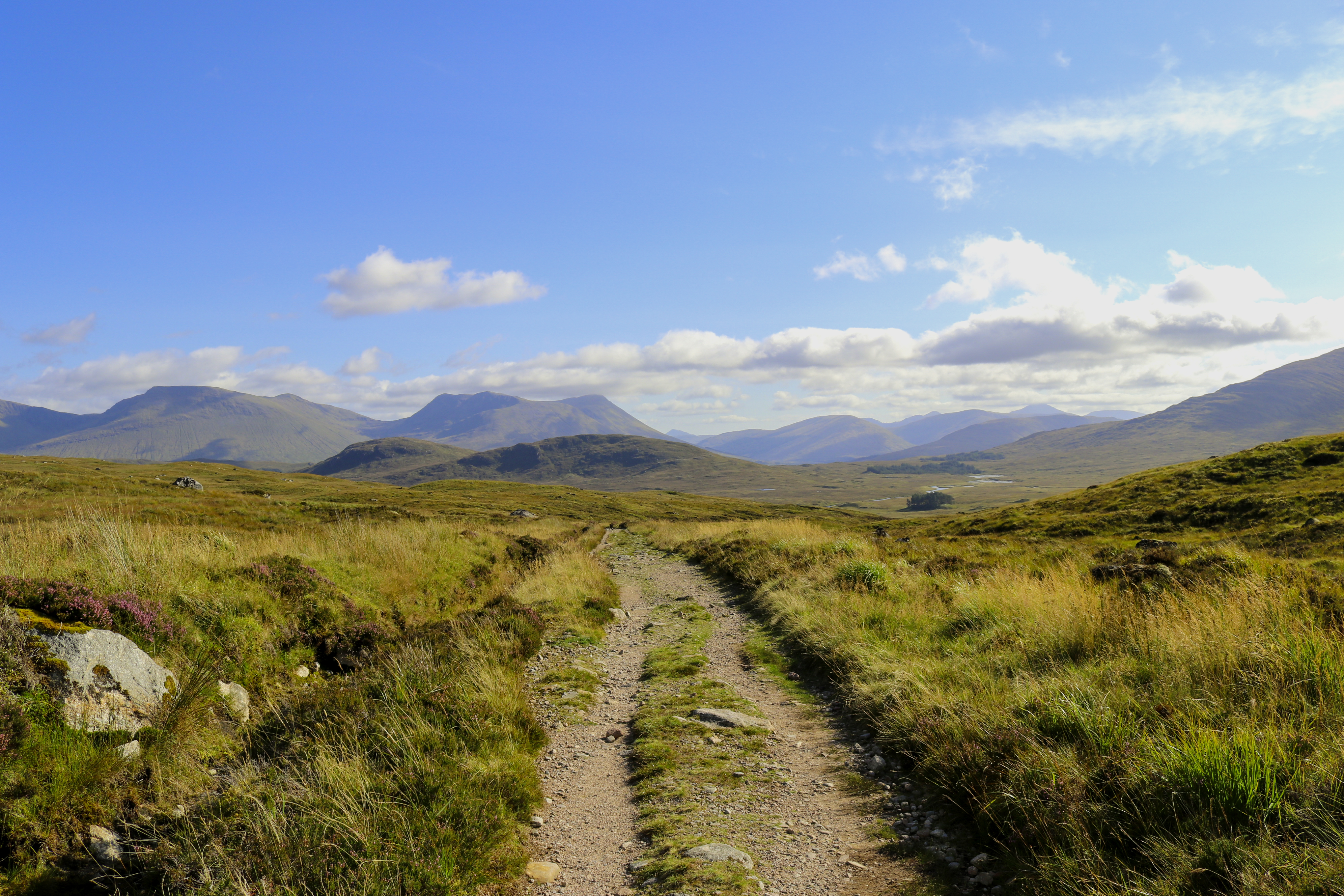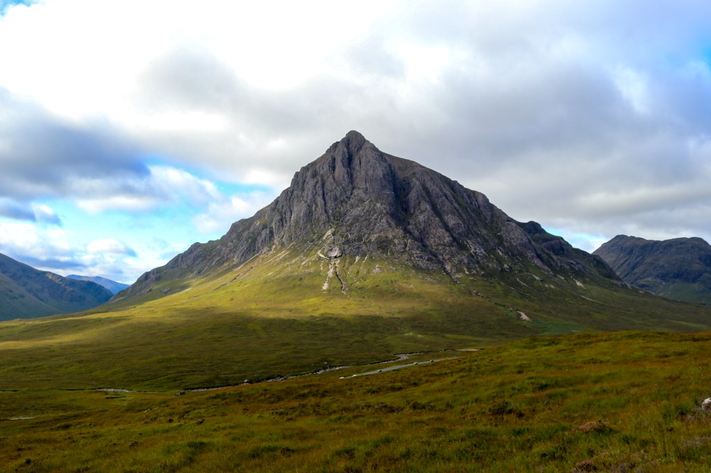 This was our second trip to Scotland, but our first to the highlands, and we absolutely fell in love! We fondly remember the days spent walking along the shore of Loch Lomond and the one night we spent in the haunted room at the Drovers Inn, but we especially loved the walk from Tyndrum to Kingshouse. At the start of that day, we climbed out of the Alt Kingglass River valley to the Bridge of Orchy, where I had my first and only English scone with clotted cream and jam. Life Changing! From there, we climbed onto the shoulder of the Black Mount range, across Rannoch Moor, and over to Kinghouse. The landscape in this section of the trail feels tremendous and quite remote. It was covered in beautiful Scottish Heather, grass, and rock–this section of the trail was by far my favorite. That night, we got our first view of Buachaille Èite Mòr, a pyramid-shaped peak pictured in the James Bond movie Skyfall.